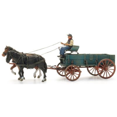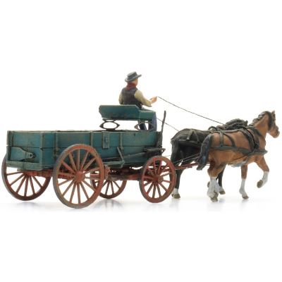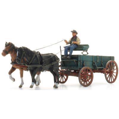 Im Maßstab 1:87 gefertigt, ist das Modell genau auf die Spur H0 abgestimmt. Es wird vollständig montiert und handbemalt geliefert, inklusive zweier Zugpferde, die den Peter Schuttler Wagen ziehen. Die Szene ist ideal für Modellbauer, die historische oder ländliche Themen mit Leben füllen möchten.