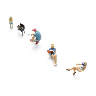 Das Set eignet sich ideal zur Darstellung entspannter Freizeitmomente. Ob auf einem Campingplatz, in einer Grünanlage oder im privaten Umfeld – die vier Figuren beleben die Szene und erzählen eine kleine Geschichte, die sofort ins Auge fällt und dem Anlagenbild mehr Tiefe verleiht.