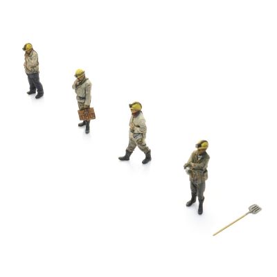Viele Figurensets von Artitec werden mit feinen Ätzteilen kombiniert, die zusätzliche Details ermöglichen. Auch bei den Kumpeln nach Schichtende tragen diese filigranen Ausgestaltungen dazu bei, die Szene glaubwürdig wirken zu lassen. Die Körperhaltungen der Figuren lassen deutlich erkennen, dass die Arbeit beendet ist und der Heimweg ansteht.