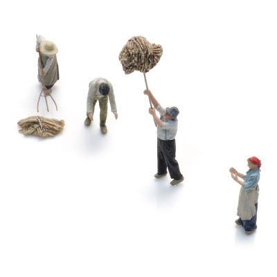 Die Figuren bestehen aus 3D-gedruckten Teilen und werden durch fotogeätzte Teile ergänzt. Diese Materialkombination ermöglicht eine sehr feine Ausarbeitung von Körperhaltungen und Werkzeugen. Gerade im Maßstab Z ist diese Präzision entscheidend, um die dargestellten Arbeitsschritte klar erkennbar umzusetzen.
