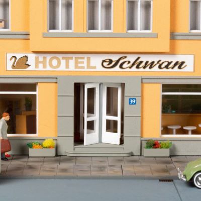 Mit dem Auhagen 11471 bringt Auhagen ein stilvolles Stadthaus im Maßstab H0 auf die Modellbahnanlage, das mit seiner typischen Gründerzeit-Architektur als „Hotel Schwan“ eine eindrucksvolle Wirkung erzielt. Dieses Gebäude fügt sich ideal in ein städtisches Umfeld ein – sei es als Hotel, Geschäftshaus oder markanter Bestandteil einer Stadtzeile. Mit seiner Vielzahl an Details und Erweiterungsmöglichkeiten ist es ein echtes Highlight für ambitionierte Modellbauer.