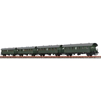 Das Brawa 4er Set umfasst vier exakt nachgebildete Personenwagen mit zahlreichen separat angesetzten Details. Die fein gravierten Nieten, vorbildgerechten Achslagerdeckel und Bremsanlagen sowie die extra angesetzten Federpakete und Tritte unterstreichen die hohe Modellbauqualität. Alle Wagen verfügen über eine originalgetreue Inneneinrichtung und wurden in Maßstab und Farbgebung der Epoche III treu umgesetzt.
