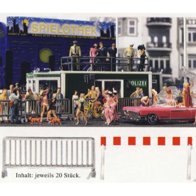 Bausatz für 20 Gitter und Absperrbaken mit Standfüßen (Gesamtlänge ca. 100 cm). Für die Gestaltung von Veranstaltungsszenen jeglicher Art: Feuerwehreinsätze, Katastrophenschutz, Demonstrationen, Rock-Konzerte usw.
