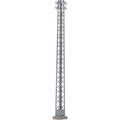 Das Fertigmodell besticht durch seine filigranen Isolatoren, die dem Gittermast eine besonders detailreiche Anmutung verleihen. In Kombination mit der feinen Metallstruktur entsteht ein realistisches Gesamtbild, das sowohl im Einzelauftritt als auch in Kombination mit weiteren Leitungs- oder Trafokomponenten überzeugt.