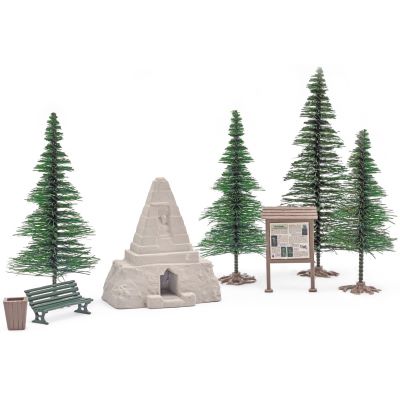 Der im Set enthaltene Obelisk zeigt deutliche Spuren der Zeit: seine Spitze ist bereits verfallen, der Stein wirkt verwittert – perfekt für Szenen mit historischem Bezug oder als stiller Ort mitten im Wald. Die beiliegende Hinweistafel ergänzt die Wirkung der Gedenkstätte und macht sie glaubwürdig in ihrer Darstellung.