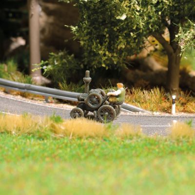 Der berühmte Lanz-Traktor gilt als Ikone der Landwirtschaft – besonders in der Nachkriegszeit war er auf deutschen Feldern nicht wegzudenken. Busch setzt dieses robuste Arbeitstier detailgetreu für die Spur N um und ergänzt das Modell um eine passende Bauernfigur, die das Szenenbild perfekt abrundet.