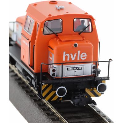Die Deutz KG230 B wurde ab 1962 als zuverlässige Werks- und Rangierlok entwickelt. Mit 230 PS starken Deutz-Dieselmotoren und robuster Technik ausgestattet, fand sie breite Anwendung in Industrie, Hafenlogistik und Werksbahnen. Die HVLE setzt eine dieser Maschinen bis heute ein – ein Beweis für die hohe Qualität und Langlebigkeit dieser Konstruktion. Als Lok 1 wurde sie im typischen HVLE-Design umlackiert und technisch auf den aktuellen Stand gebracht, ohne ihre Ursprünge zu verleugnen.