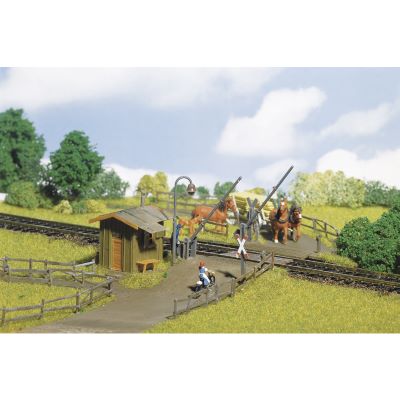 Mit diesem Produkt präsentiert die Qualitätsschmiede Faller den detailreichen Bausatz "Feldwegübergang".Hierbei handelt es sich um einen Feldwegübergang mit Schrankenwärterhaus und beweglichen Schlagbäumen.Für alle geraden oder gebogenen Modellgleise.