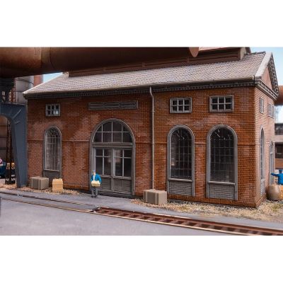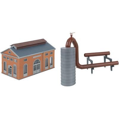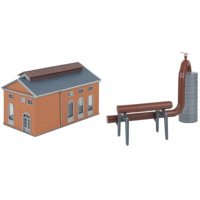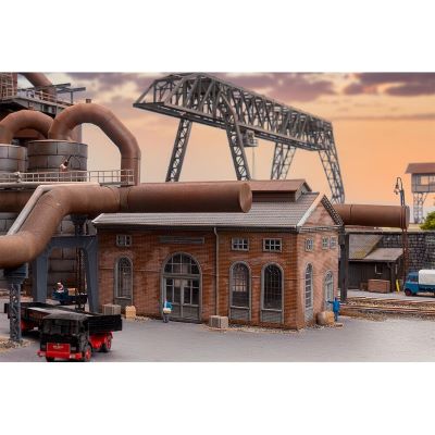Das Modell stellt ein typisches Backsteingebäude mit Hochtank und komplexer Rohrleitungsstruktur dar – genau so, wie es in der Gichtgasreinigung großer Hüttenwerke eingesetzt wird. Es bildet ein wichtiges Bindeglied zwischen Hochofen und Gasverwertung und fügt sich perfekt in jede industrielle Szenengestaltung ein.
