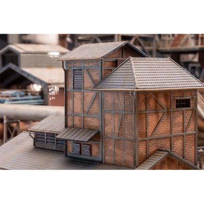 Mit ihrer imposanten Größe von 256 x 190 x 210 mm ist die Gebläsehalle ein zentrales Element auf jeder Anlage. Sie dominiert das industrielle Umfeld und unterstreicht den massiven Charakter von Stahlwerken und Werksanlagen. Ideal auch als zentrales Motiv in modularen Industrie-Dioramen oder Ausstellungsanlagen.