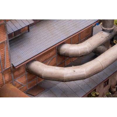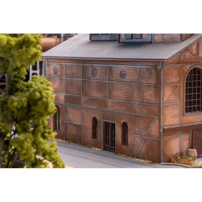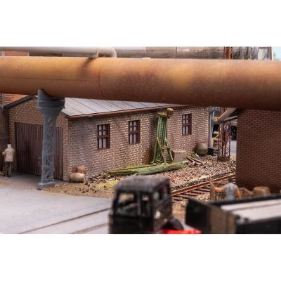 Die Halle ist als Ergänzungsbau zum Meidericher Hochofenmodell konzipiert und passt optisch sowie funktional ideal in größere Industrieanlagen. Sie fügt sich nahtlos in bestehende Industrieareale ein und lässt sich über das separat erhältliche Rohrleitungs-Set (Art. 180327) noch realistischer und umfangreicher gestalten.