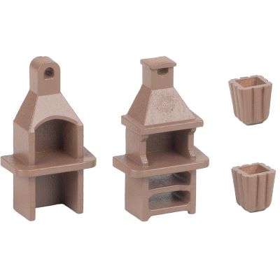Ob in der Gartenlaube, auf dem Campingplatz oder im öffentlichen Park – diese braunen Gartengrills bringen echtes Sommer-Feeling auf Ihre Anlage. Gemeinsam mit den beiliegenden Holzmülleimern lässt sich im Handumdrehen eine überzeugende Szene gestalten, in der Ihre Miniaturbewohner einen gemütlichen Grillabend verbringen.