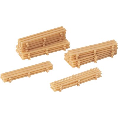 Der Bausatz besteht aus 42 einfarbigen Einzelteilen und lässt sich leicht zusammensetzen. Damit ist er sowohl für Einsteiger als auch erfahrene Modellbauer geeignet. Die Stapel lassen sich individuell arrangieren, wodurch Sie Ihre Anlagenkulisse flexibel gestalten können. Ob nebeneinander aufgereiht, gestaffelt oder vereinzelt – die Bretterstapel werten jede Szene optisch auf und sorgen für ein lebendiges Umfeld auf Ihrer Anlage.