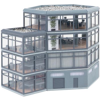 Mit dem Faller 222227 Bürohochhaus ergänzen Sie Ihre N-Anlage um ein architektonisch anspruchsvolles und vielseitig einsetzbares Modellgebäude. Jetzt im Modellbahnshop erhältlich – schaffen Sie urbanes Flair und moderne Stadtbilder mit diesem außergewöhnlichen Bürokomplex!