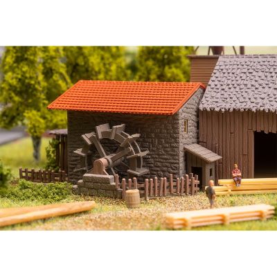 Besonders das große Wasserrad zieht alle Blicke auf sich: Es kann durch einen Motor (Art. 180629) in Bewegung versetzt werden, was dem Modell zusätzliche Dynamik und Realitätsnähe verleiht. Der Einbau des Motors muss jedoch während des Zusammenbaus erfolgen – ideal für Modellbauer, die bereits beim Bauen an das spätere Gesamtbild denken.