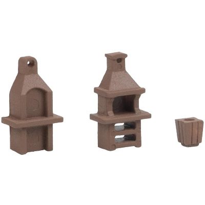 Die beiden braunen Gartengrills sind fein gearbeitet und sorgen für realistische Szenen im Maßstab 1:160. Besonders in Kombination mit Figuren, Häusern und weiteren Gartendekorationen entfalten sie ihre volle Wirkung. So lassen sich lebendige Szenen rund um Sommer, Freizeit und Geselligkeit gestalten.