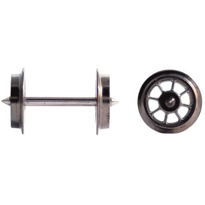 Die klassische Speichenoptik dieser Radsätze spiegelt die historischen Vorbilder früherer Eisenbahnepochen wider. Fein gearbeitete Radscheiben aus Metall verleihen den Wagen ein realistisches Aussehen und werten das gesamte Erscheinungsbild deutlich auf. Die exakte Fertigung garantiert eine lange Lebensdauer und hohe Betriebssicherheit.