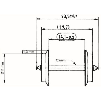 - Raddurchmesser: 11 mm, Achslänge: 23,5 mm