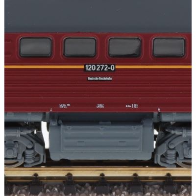Das Modell ist in der typischen Farbgebung der Deutschen Reichsbahn gestaltet und besitzt eine breite Chromleiste, die dem Vorbild entspricht. Die detaillierte Dachgestaltung mit dem charakteristischen Schalldämpfer macht dieses Modell besonders authentisch.