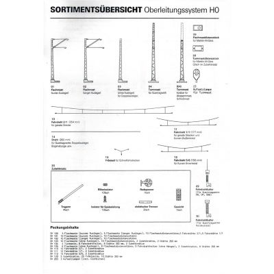 Der Artikel enthält Baumaterial für 2 Quertragewerke. Das Set besteht aus sechse Leitermasten, neun Fahrdrahthaltern, acht weiteren Drähten und zwei Zubehörsätzen.