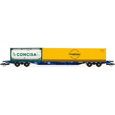 Hornby überzeugt bei diesem Modell mit einer hohen Detailtreue: Der Wagenrahmen ist filigran gearbeitet, die Container sind separat gestaltet und mit authentischer Bedruckung versehen. Die Kombination beider Containergrößen sorgt für eine abwechslungsreiche Optik im Zugverband. Alle Details, von den Griffstangen über die Puffer bis hin zu den Containerverriegelungen, wurden exakt im Maßstab 1:120 umgesetzt.