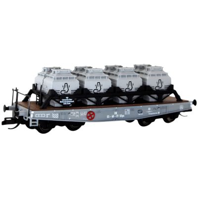 Der Karsei 23292 TT Schwerlastwagen SSys mit Kalkkübeln ist ein hochdetailliertes Modell eines Schwerlastträgers der Deutschen Reichsbahn aus der Epoche III. Mit seiner markanten Beladung – mehreren industriellen Kalkkübeln – stellt dieser Wagen eine typische Szene aus dem Güterverkehr der 1950er- und frühen 1960er-Jahre dar. Der Wagen verweist auf seinen Ursprung im „Eisenwerk West Calbe – Saale“, einer bedeutenden Industriestätte der DDR.