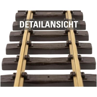Neben der technischen Zuverlässigkeit überzeugt das Gleis auch optisch. Die Kunststoffschwellen sind mit einer originalgetreuen Holzmaserung versehen und sorgen für ein realistisches Erscheinungsbild Ihrer Gartenbahnstrecke.