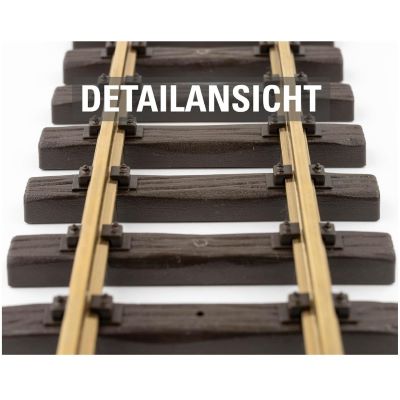 Die Kunststoffschwellen sind mit einer originalgetreuen Holzmaserung versehen und sorgen für eine realistische Darstellung. Dadurch fügt sich das Gleis harmonisch in Ihre Gartenbahnanlage ein.