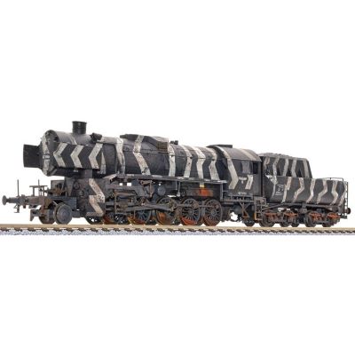 Die Lok wurde aufwendig von Hand gealtert – inklusive Rostflecken, Schmutzspuren und matter Oberfläche. Die winterliche Tarnlackierung mit zebraartigem Muster verleiht dem Modell einen markanten Look und orientiert sich an Originalvorbildern aus dem Zweiten Weltkrieg. Jedes Exemplar ist ein Unikat mit individueller Patina – perfekt für anspruchsvolle Modellbahner mit Sinn für historische Genauigkeit.