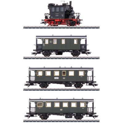 Die Märklin 26619 Zugpackung „Spalter Bockl“ bringt die charmante Lokalbahngeschichte der 1950er Jahre zurück auf Ihre H0-Anlage. Das Set besteht aus der legendären bayerischen Tenderlokomotive der Baureihe 98.3 – besser bekannt als „Glaskasten“ – sowie drei passenden Lokalbahnwagen der Deutschen Bundesbahn, wie sie um 1957 im Einsatz waren. Enthalten sind ein Gepäck- und Postwagen sowie zwei Personenwagen 3. Klasse – alle bayerischer Bauart.