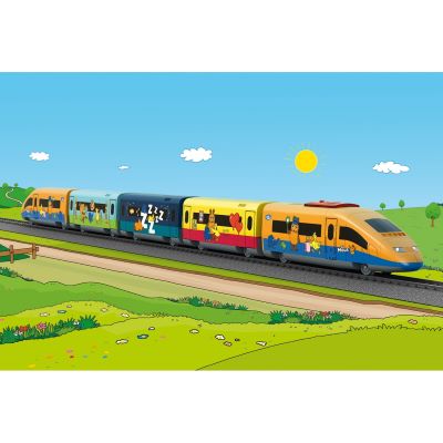 Im Mittelpunkt steht ein 5-teiliger Hochgeschwindigkeitszug mit einer beeindruckenden Gesamtlänge von 63 cm. Der Zug ist im charmanten Design der „Sendung mit der Maus“ gestaltet und begeistert mit zahlreichen liebevollen Details, die Kinderherzen höherschlagen lassen. Dank seines schnittigen Erscheinungsbilds und der sanften Fahreigenschaften bringt er Bewegung und Farbe ins Kinderzimmer.
