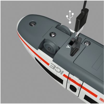 Der fünfteilige ICE 3 überzeugt durch eine dem Original nachempfundene Gestaltung und liebevolle Details, die kleine Bahnfreunde zum Staunen bringen. Mit einer Gesamtlänge von ca. 63 cm bietet der Zug genug Spielraum für realistische Einsatzszenarien und eignet sich hervorragend als Einstieg in die digitale Welt der Modelleisenbahn.
