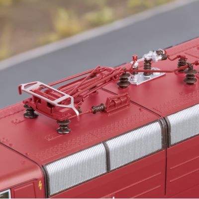 Ein besonderes Highlight sind die digital heb- und senkbaren Stromabnehmer, die mit unterschiedlichen Schleifstücken vorbildgerecht ausgestattet sind – ideal für den grenzüberschreitenden Einsatz in verschiedenen Stromsystemen. Die Pufferhöhe entspricht der NEM-Norm, ebenso wie die kinematikgeführten Kurzkupplungen, welche für einen realistischen Wagenübergang sorgen. Die Länge über Puffer beträgt 20,5 cm.