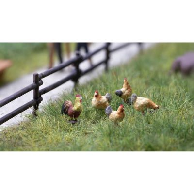 - Detailbemalte Miniaturtiere (Hühner & Hahn)