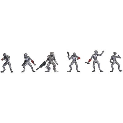 Einige von ihnen sind mit Laser-Kanonen bewaffnet. Ihre silbernen Rüstungen schützen sie nicht nur, sondern sind gleichzeitig ein Raumanzug, der sie mit lebenserhaltenden Stoffen versorgt. Neben Laser-Pistolen, Transpondern und Funkgeräten tragen einige Aliens einen Helm. Einzig Fred ist total verwirrt seit dem Absturz und schaut sich hilfesuchend um.