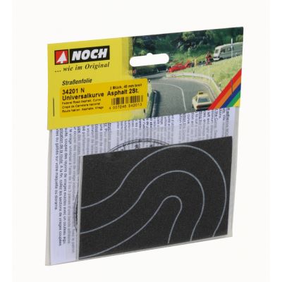 NOCH Straßenfolie - damit kriegen Sie immer die Kurve. Der realistische Straßenbau wird mit NOCH Straßenfolie ganz einfach möglich gemacht: Die stabile, flexible und selbstklebende Straßenfolie lässt sich einfach aufkleben. Sie ist in verschiedenen Breiten (Bundesstraße, Landstraße), als Universalkurve, Kreuzung und Parkplatz sowie als Kopfsteinpflaster verfügbar. NOCH Straßen-Folie wird in den Farebvarianten "Asphalt" und "grau" für die Spurweiten H0, TT und N angeboten.