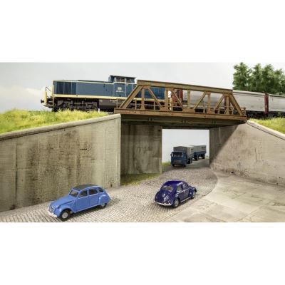 Ob in Gebirgsszenen, an Böschungen oder als urbanes Tunnelbauwerk – das 2-gleisige Betonportal fügt sich harmonisch in unterschiedlichste Modelllandschaften ein. Durch seine dezente Gestaltung passt es sich zurückhaltend an und lässt den Zügen den Vortritt, während es dennoch den Blick auf sich zieht.