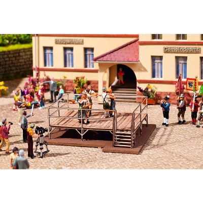 NOCH micro-motion Í der digitale Tanzboden H0 Jetzt kommt noch mehr Bewegung in Ihre Modell-Landschaft! Auf dem digitalen Tanzboden schwingen drei Paare ihr Tanzbein und beherrschen drei verschiedene, abwechslungsreiche Tänze. Der Tanzboden selbst ist ein Laser-Cut Bausatz. Der Antrieb für die Tänzer ist bereits im Unterbau des Tanzbodens integriert und bereit zum Einsatz. DieTanzenden werden einfach auf die Antriebswellen aufgesteckt. Mit einem beiliegenden Schalter starten Sie die Tanzrunde. Alternativ ermöglicht der eingebaute Digitaldecoder die Auslösung über eine Digitalzentrale. Der Digitaldecoder ist programmierbar und erkennt Märklin ® / Motorola und DCC / NMRA Schaltbefehle automatisch. Falls Sie eine »kleine Digital-Zentrale« besitzen (z.B. Märklin Mobile Station) können Sie die Bewegung auch über eine Lokadresse auslösen. 7 cm lang x 6 cm breit, Gesamthöhe 5 cm (davon Einbautiefe 2,5 cm) Inhalt des Bausatzes: Drei tanzende Paare zum Aufstecken auf den Tanzboden, Laser-Cut Bausatz für den Tanzboden, Vorkonfektionierter Unterbau mit Antrieb für dieTanzenden, Digitaldecoder (MM / DCC) zur Ansteuerung mit Schalter. Liefertermin: November 2011