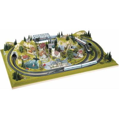 Mit dem Fertiggelände „Schönmühlen“ bietet Noch eine liebevoll gestaltete Modellbahnlandschaft in der mittleren Größe (160 × 100 cm) an. Die Anlage begeistert durch eine abwechslungsreiche Gleisführung mit Brücken, Tunneln und zahlreichen realistischen Landschaftselementen. Dank der kompakten Maße und dem durchdachten Aufbau eignet sich das Gelände perfekt für Einsteiger und Fortgeschrittene, die schnell in den Fahrbetrieb einsteigen möchten.