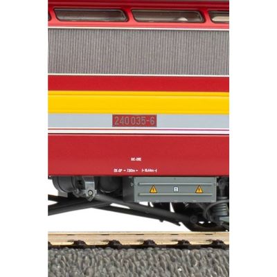 Der integrierte mfx®-fähige Sounddecoder sorgt für originalgetreue Geräuschkulissen. Das Modell verfügt über zwei fein gearbeitete Scherenstromabnehmer aus Metall, transparente Oberlichter im Maschinenraum und eine detailreiche Nachbildung der Drehgestelle. Die Führerstands-, Maschinenraum- und Pultbeleuchtung sind digital schaltbar über den PluX22 Decoder.