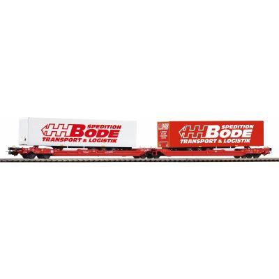 Der Piko 24625 H0 Taschenwagen T3000e „Bode“ ist eine detailreiche Nachbildung eines modernen Güterwagens der Deutschen Bahn AG aus Epoche VI. Dieses Modell ist mit zwei „Bode“-Trailern ausgestattet und bietet eine authentische Ergänzung für moderne Güterzüge auf Ihrer H0-Modellbahnanlage.