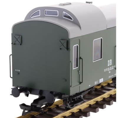 Das Modell ist für die G-Spur ausgelegt und passt perfekt zu historischen Dampflokomotiven und Reisezugwagen der Deutschen Reichsbahn. Mit einer Länge über Puffer von 350 mm und einem Mindestradius von 600 mm kann dieser Wagen problemlos auf Gartenbahnanlagen eingesetzt werden.