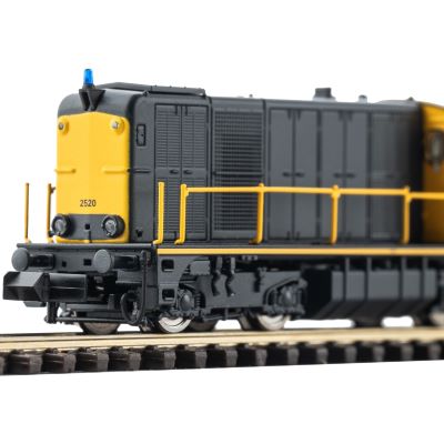 Die Baureihe 2400 wurde in den 1950er Jahren von den Niederländischen Staatsbahnen (NS) in Auftrag gegeben, um die Dampftraktion durch Diesellokomotiven zu ersetzen. Diese robusten Maschinen wurden in Frankreich gefertigt und galten als äußerst zuverlässig. Die grau-gelbe Lackierung, wie sie hier nachgebildet ist, war typisch für die Epoche IV und unterstrich die Funktionalität und Effizienz dieser Lokomotiven. Mit ihrer markanten Rundumleuchte war die Rh 2400 ein vertrauter Anblick auf niederländischen Gleisen und bewältigte sowohl Güter- als auch Personenzüge mit Leichtigkeit.