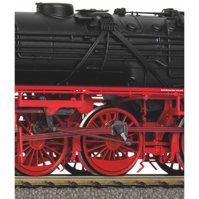 Das Modell bietet digital schaltbare Führerstandsbeleuchtung, Fahrwerksbeleuchtung sowie ein realistisch flackerndes Feuerbüchsenlicht. Die PIKO TrainSound®-Technologie liefert ein authentisches Klangerlebnis, unterstützt durch den werkseitig integrierten Dampfgenerator. Die Lok zeigt eine detaillierte Kesselrückwand, feine Radsterne und ein offenes Triebwerk mit filigranem Barrenrahmen und freiem Durchblick.