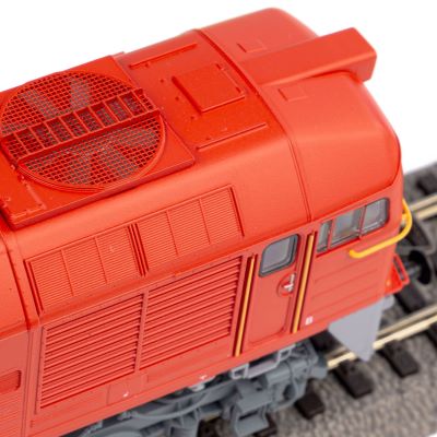 Die M62 kommt mit einer LüP von 202 mm daher und ist damit eine imposante Erscheinung auf jeder H0-Anlage. Die Lok ist mit zahlreichen angesetzten Details ausgestattet, die ihre Herkunft und den Einsatz bei der MAV realistisch widerspiegeln. Der weiße/rote Lichtwechsel passt sich automatisch der Fahrtrichtung an und rundet das Erscheinungsbild im Betrieb harmonisch ab.