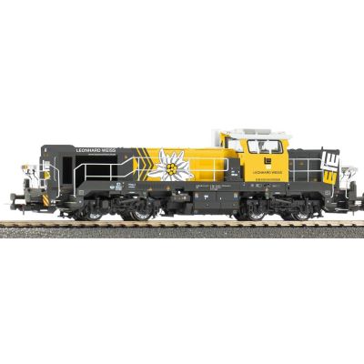 Die **DE 18** ist eine moderne dieselhydraulische Lokomotive von Vossloh, die häufig bei privaten Bahngesellschaften wie **Leonhard Weiss** zum Einsatz kommt. Sie wird in Bauzügen, beim Transport von Schüttgut und im Gleisbau eingesetzt. Die dazugehörigen **Fakks 127 Wagen** sind typische Bauzugwagen zum Transport von Schotter, Sand oder Schüttgut – ideal für realistische Baustellenszenarien auf der Modellbahn.