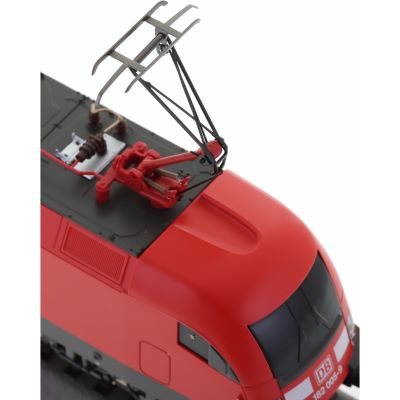 Die Lok zeigt sich im klassischen DB-AG-Design der Epoche VI: leuchtendes Verkehrsrot, klar gesetztes DB-Logo und fein ausgeführte Beschriftungen. Die Bedruckung ist scharf und abriebfest, das Gehäuse detailreich graviert. Auch die Dachausrüstung, insbesondere die Stromabnehmer, ist fein modelliert und rundet das hochwertige Gesamtbild ab.