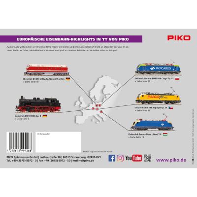 Ganz gleich ob Sie eine neue Anlage planen, Ihr Rollmaterial erweitern oder gezielt nach neuen Produkten suchen – mit dem PIKO TT Katalog 2026 sind Sie bestens informiert.