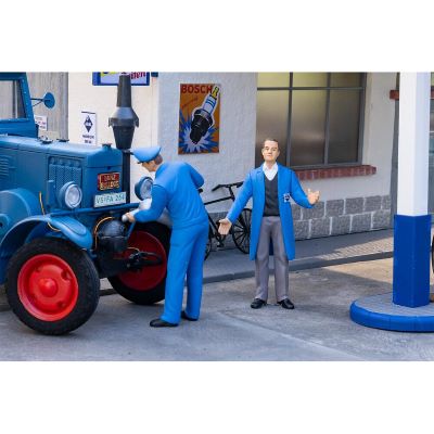Service, Technik und Kommunikation – das Tankstellenpersonal bringt Funktionalität und Leben in Ihre Szenerie. Ideal für Modellbauer, die alltägliche Arbeitssituationen authentisch in Szene setzen möchten.