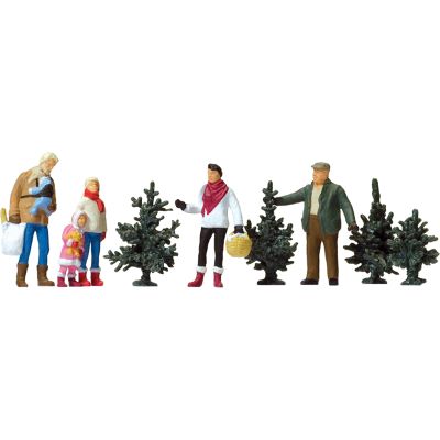 Die Exklusivserie Weihnachtsbaumverkauf besteht aus 5 sorgfälltig handbemalten Kunststoff-Miniaturfiguren und Zubehör.